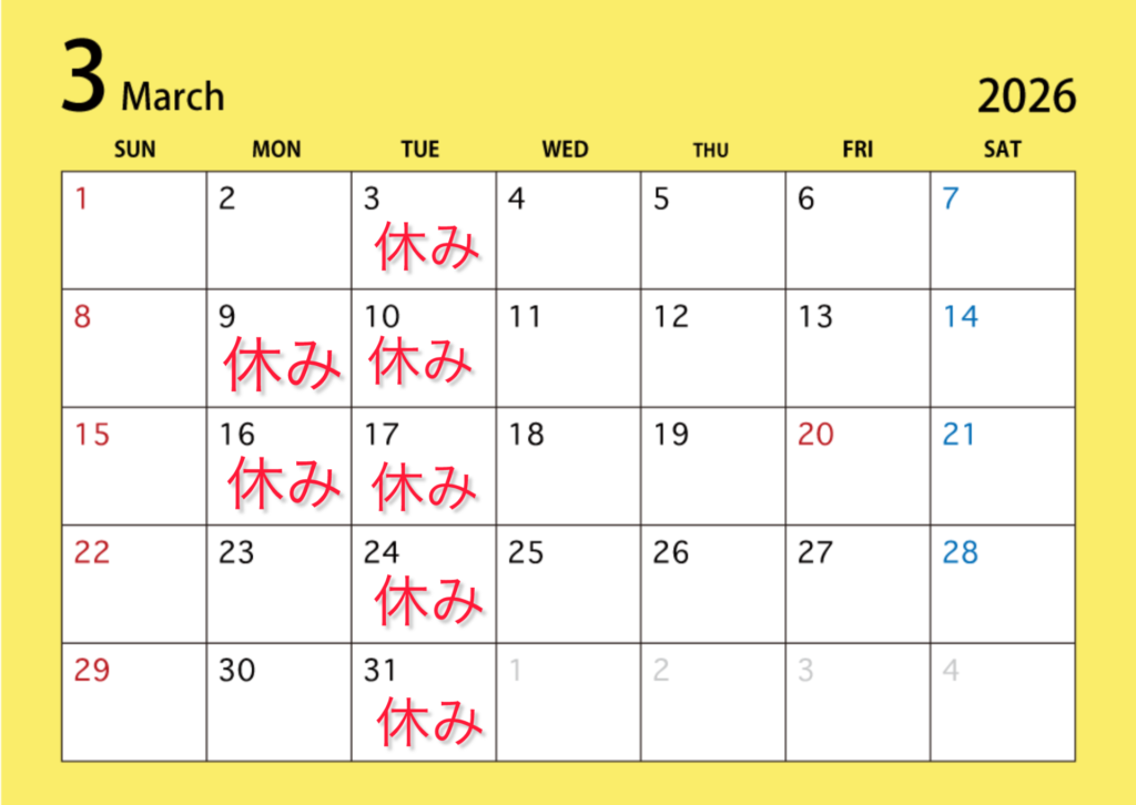 2026年から定休日が月曜日から火曜日に変わります。